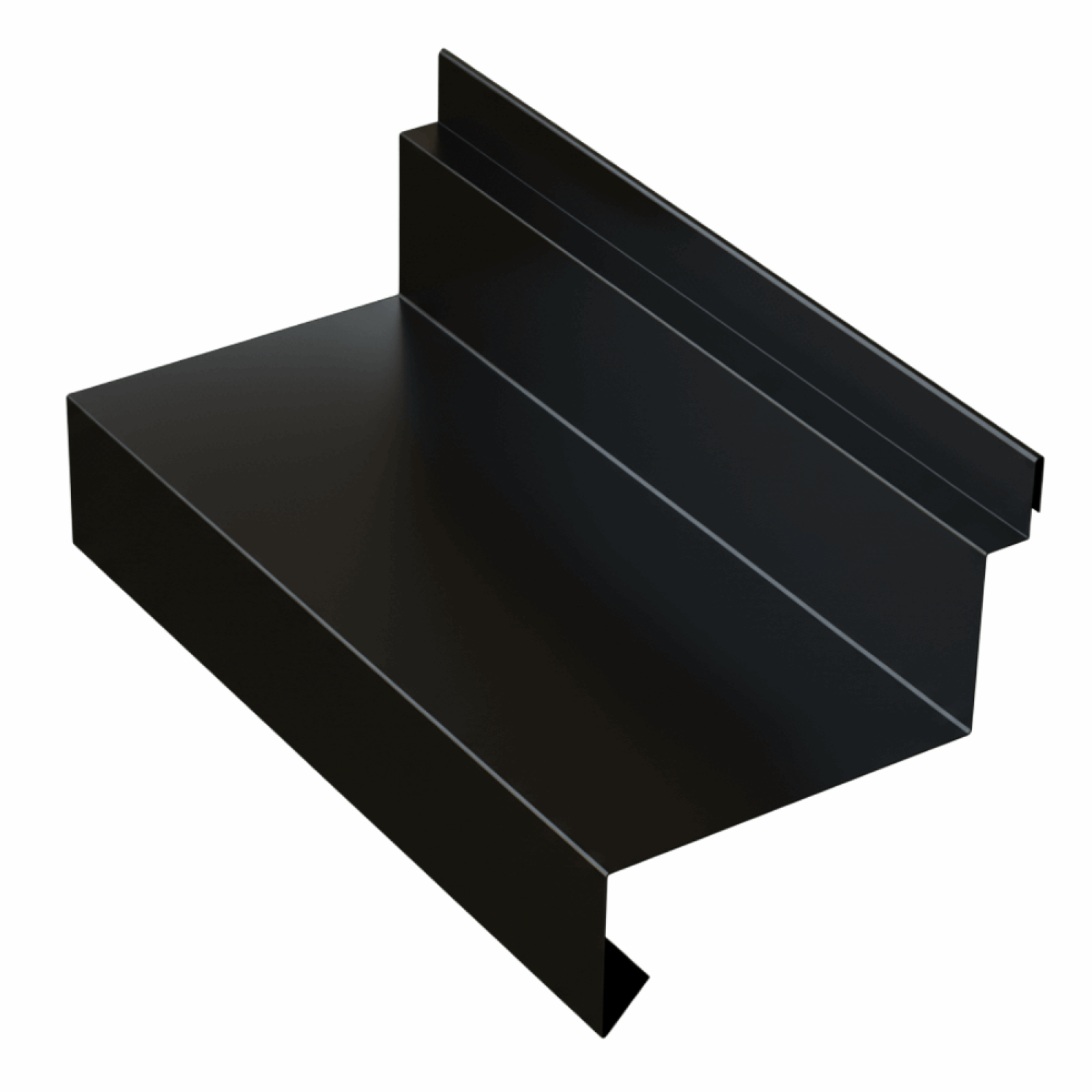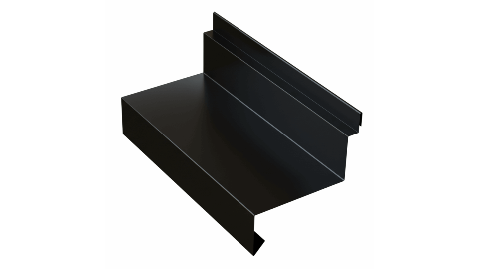 Планка отлива цокольного для сэндвич панелей 0,45 PE RAL 9005 черный — это доборный элемент, который одновременно защищает узел примыкания панелей к цоколю от влаги и придаёт фасаду аккуратный, завершённый вид в классическом черном цвете по шкале RAL 9005.