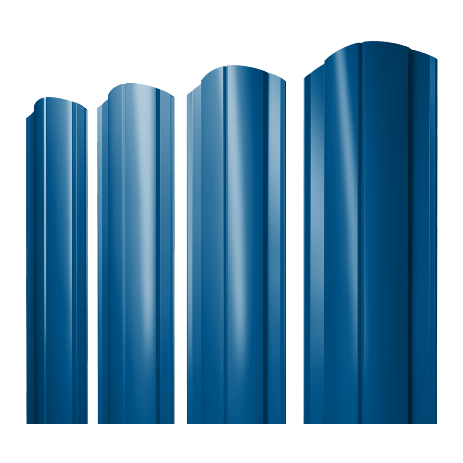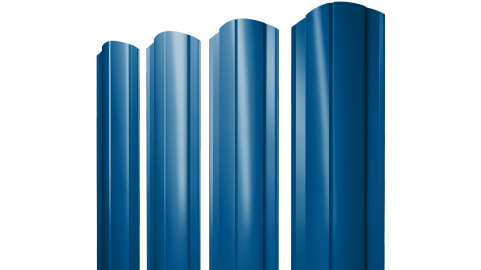 В ассортименте фигурных штакетников модель круглой формы с полиэстеровым покрытием в сигнальном синем RAL 5005 предлагает легкость и яркость. Это вариант для морских или современных стилей, где синий оттенок добавляет свежести, сочетая эстетику с защитой от коррозии и простотой монтажа в прибрежных зонах.
