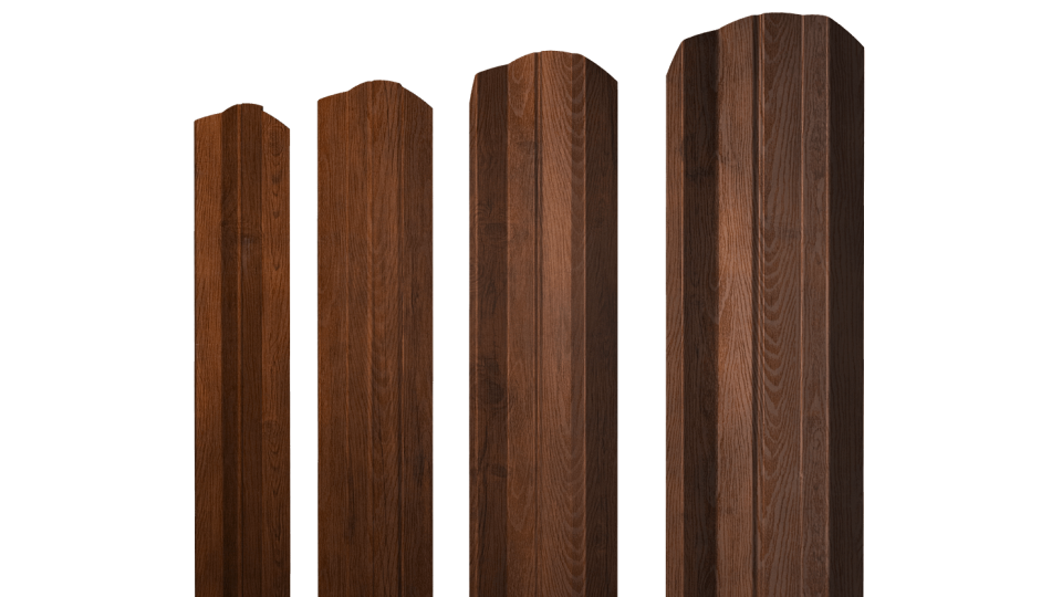 Штакетник изготовлен из оцинкованной стали толщиной 0,4 мм с двухсторонним полимерным покрытием, что обеспечивает защиту от коррозии и долговечность.