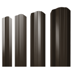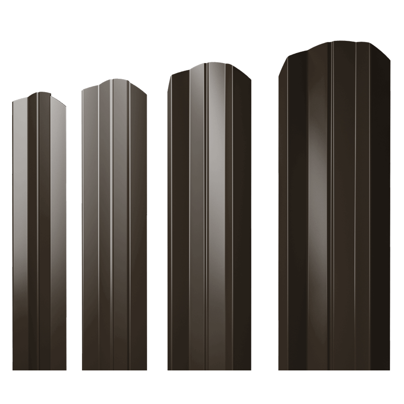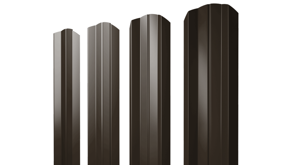 П-образный фигурный штакетник из стали толщиной 0,45 мм с ровным прямым срезом и текстурным Drap-покрытием RR 32 «Тёмно-коричневый» объединяет глубокий матовый шоколадный оттенок и инженерную надёжность. Односторонний слой полиэстера 25 мкм надёжно защищает от коррозии, ультрафиолета и механических нагрузок до 15 лет без сезонного ухода. P-профиль обеспечивает плотное «встык» соединение, визуально скрывая стыки и создавая эффект монолитного «парящего» забора.