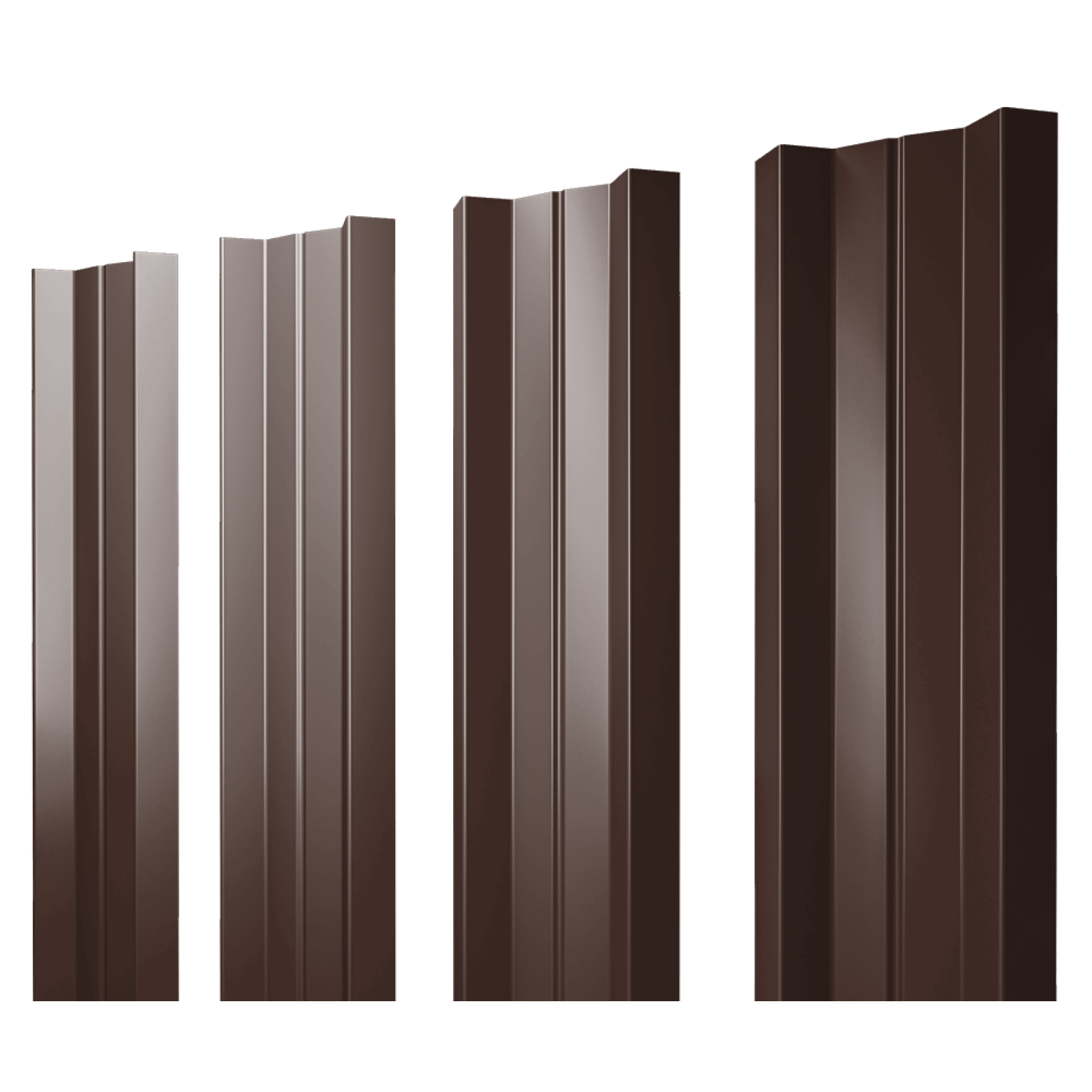 М-образный металлический штакетник в оттенке шоколада объединяет прочность и изысканность, словно горький шоколад с твердой корочкой, скрывающей кремовую середину. Профиль с выпуклой формой и центральной канавкой усиливает жесткость, делая его отличным вариантом для элегантных и надежных ограждений.