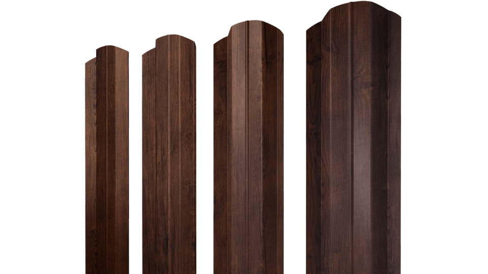 Штакетник изготовлен из оцинкованной стали с полимерным покрытием Print Premium, что обеспечивает защиту от коррозии, гниения и плесени. Такой материал отличается высокой долговечностью и устойчивостью к погодным условиям.