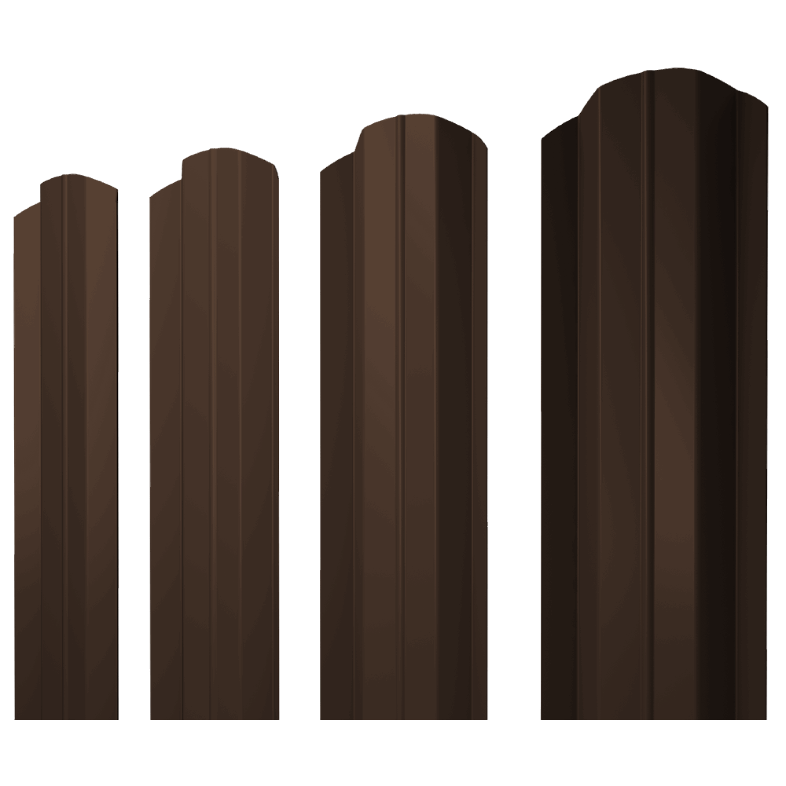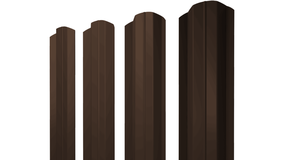 Премиальный штакетник M-образного V-фигурного профиля из оцинкованной стали толщиной 0,5 мм с ровным прямым срезом и односторонним полиэстеровым покрытием Satin 25 мкм в оттенке RAL 8017 «Шоколад» сочетает глубокий матовый тон и инженерную прочность. Плотное «встык» соединение создаёт эффект монолитного «парящего» экрана, а защита от коррозии и выцветания до 15 лет гарантирует безупречный вид без сезонного обслуживания.