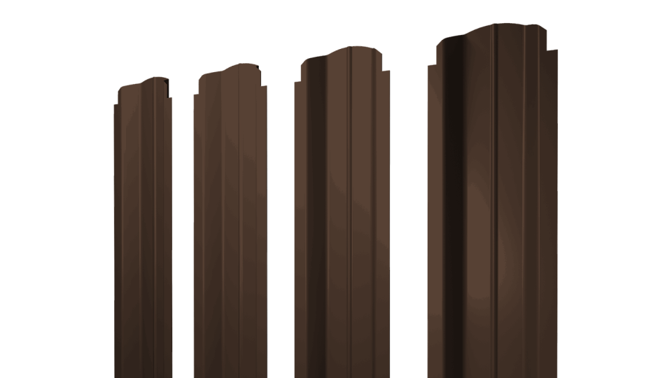 Теплый «шоколадный» оттенок RAL 8017 на полимерном покрытии PE Matt Double придаёт забору уютный, аристократичный характер, подчёркивая зелень сада и тёплые фасады дома. Фигурный P-профиль с двойным изгибом и центральным рёбром жёсткости выстраивает ритмичный ряд пикетов, объединяя декоративность и повышенную прочность.