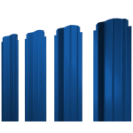 Штакетник изготовлен из оцинкованной стали толщиной 0,45 мм с глянцевым полимерным покрытием полиэстер синего цвета (RAL 5005). Такое покрытие защищает металл от коррозии и сохраняет насыщенный цвет даже при длительной эксплуатации.