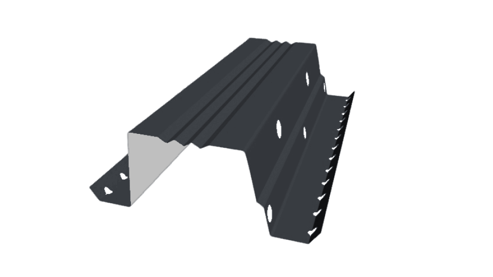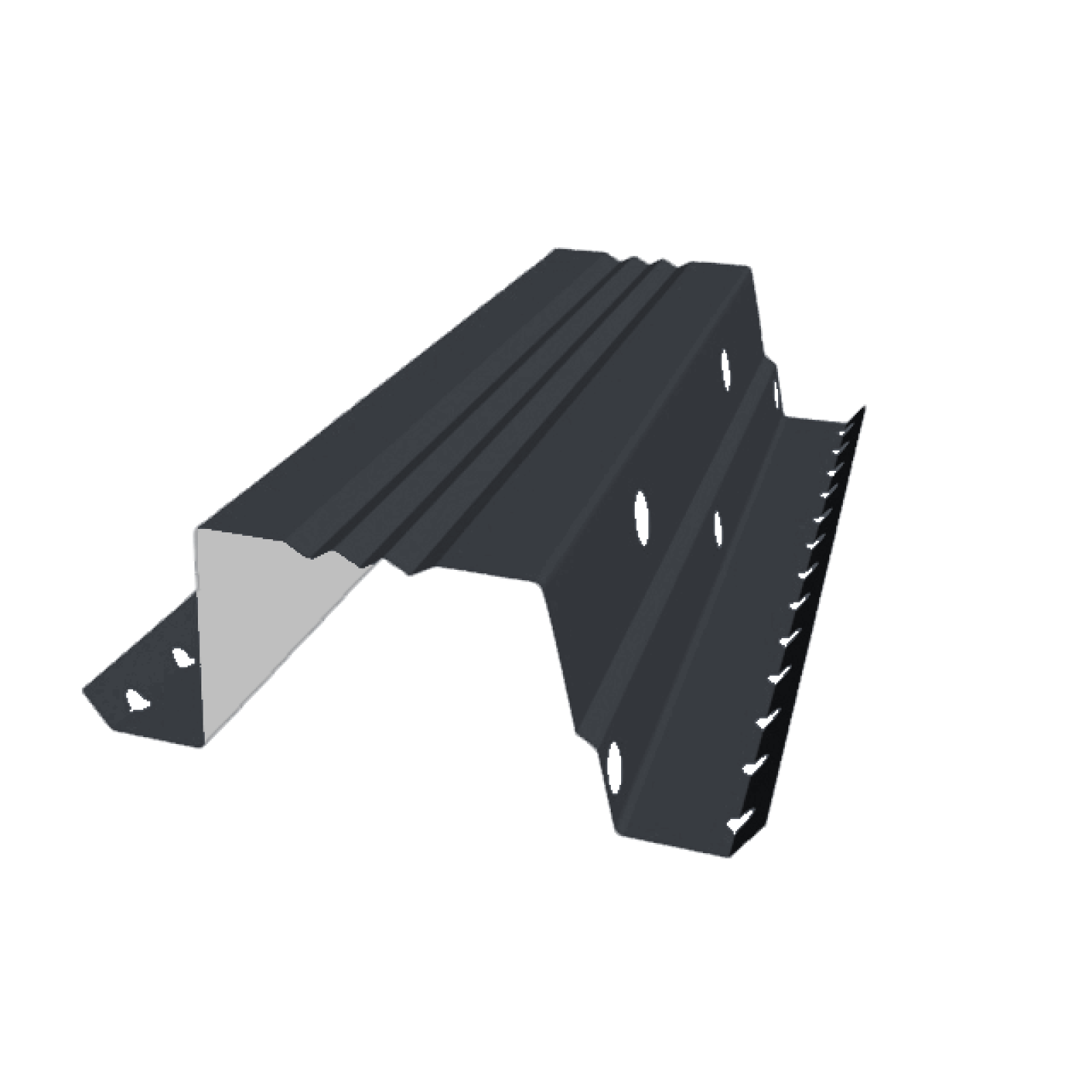 | Планка примыкания Grand Line RAL 7024 | Комплектация по цвету и размеру идеальна для создания цельной кровельной картины | Планка шире, требует большей точности при работе в компактных зонах |